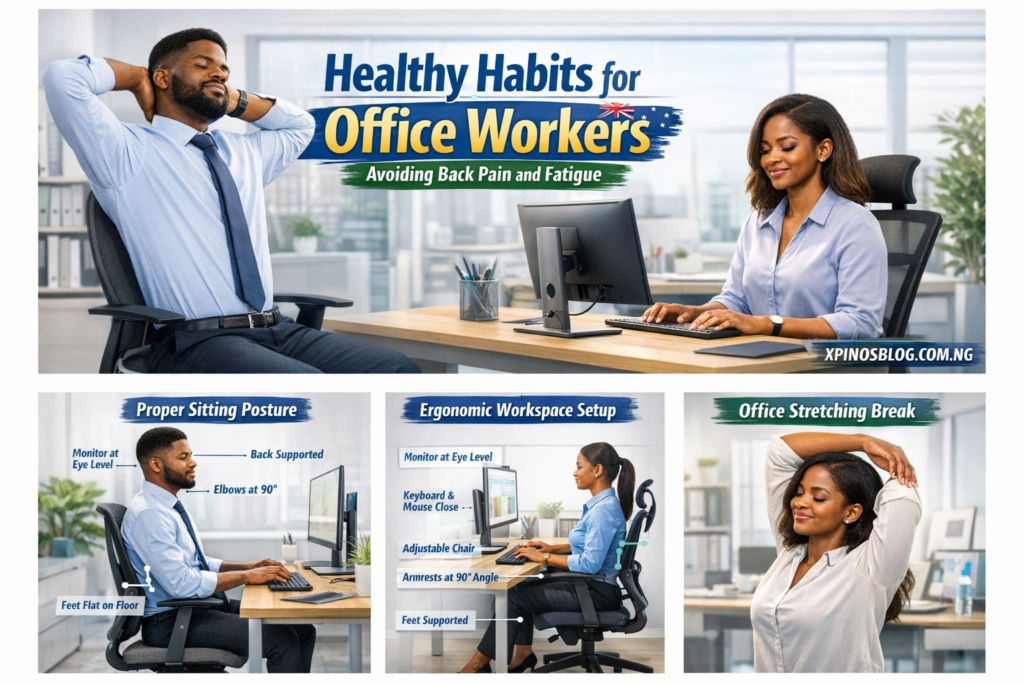 Long hours at a desk can quietly damage your health. Whether you’re in a Lagos office or working remotely in Australia, sitting for extended periods can lead to back pain, neck stiffness, and chronic fatigue. The good news? You can fix most of these issues with simple, consistent habits.